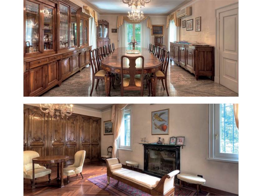 Entrando nella villa si viene accolti da un ingresso che comprende un soggiorno con un magnifico camino che crea un'atmosfera accogliente. Una spaziosa sala da pranzo ospita banchetti reali e incontri sociali.
